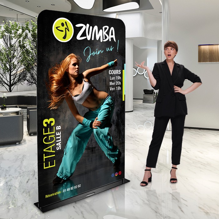 Nos Kakémonos tissu haut de gamme sont l’idéal pour faire forte impression ! Avec son visuel imprimé sur tissu ultra HD, sa qualité d’impression vous laissera sans voix !